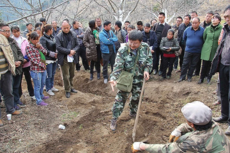 受邀的保山市林业局高级工程师万小军现场讲解并示范核桃丰产栽培技术。