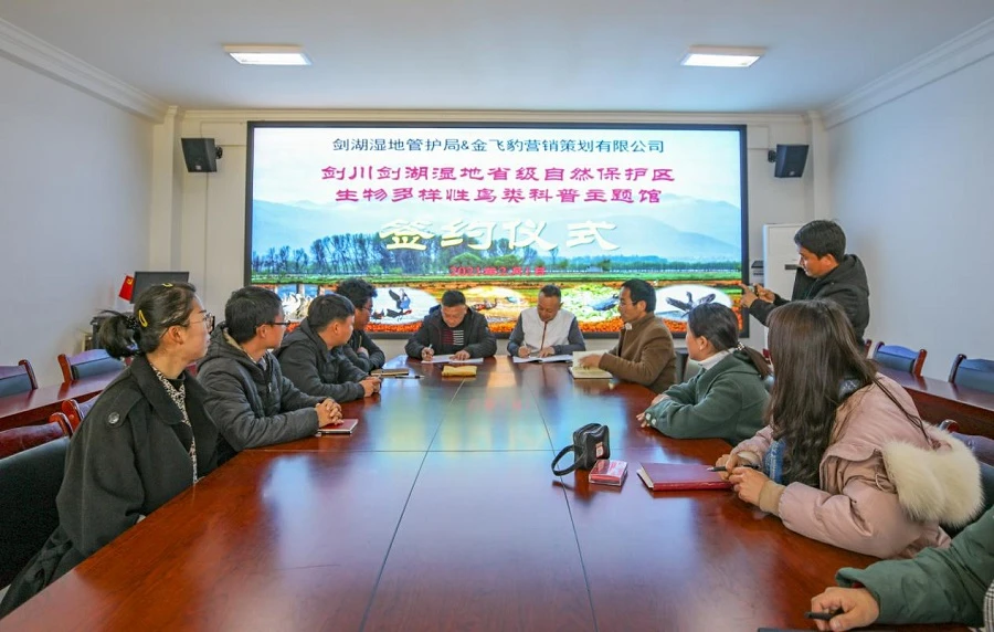 2021年世界湿地日到来之际,大理剑川剑湖湿地管护局与著名探险家正式签订协议,双方就建设剑川剑湖湿地省级自然保护区生物多样性鸟类科普主题馆项目达成深度合作,实现资源共享、优势互补。建设剑川剑湖湿地省级自然保护区生物多样性鸟类科普主题馆,积极主动融入大滇西旅游环线建设,助力剑川县以建设运营国家方志馆南方丝绸之路分馆,打造面向南亚东南亚的文化辐射中心和建设茶马古道上的国家历史文化名城、大滇西旅游环线上的魅力沙溪。