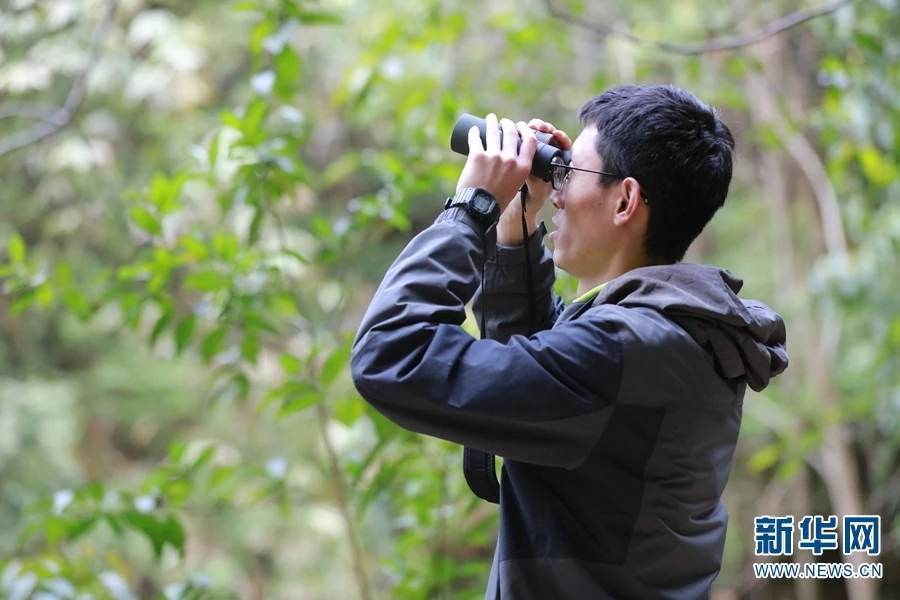 图为牛晓炜在用望远镜观察西黑冠长臂猿。牛晓炜是中国科学院昆明动物研究所在读博士,主要从事西黑冠长臂猿“声音通讯”研究工作,“我们的课堂在野外,大自然是我们最好的实验室。通过我们的研究,去更好地保护西黑冠长臂猿,保护大自然的生物多样性。”(2021年3月4日摄)(新华网 赵普凡/摄)