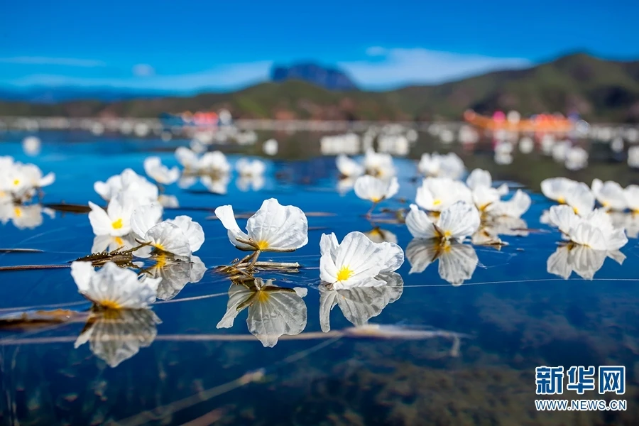 图为美丽的沉水植物海菜花。海菜花只有在温暖清澈的河湖里才会出现,因此被称为“清流精灵”“水质试金石”,它同时也是一种美味的食材,深受云南多地老百姓的喜爱(摄于2019年6月20日)。(新华网 陈畅/摄)