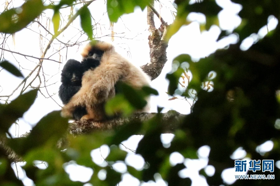 图为无量山国家级自然保护区内的西黑冠长臂猿。西黑冠长臂猿是国家一级重点保护野生动物。中国(云南)西黑冠长臂猿种群数量约1400只,占全球90%以上,并集中分布于云南哀牢山和无量山地区(2021年3月4日摄)。(新华网 赵普凡/摄)