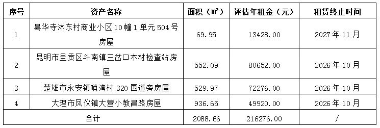 云南省森林和草原资源核查中心拟对以下闲置房屋进行出租,具体面积以实际面积为准,分布情况如下: