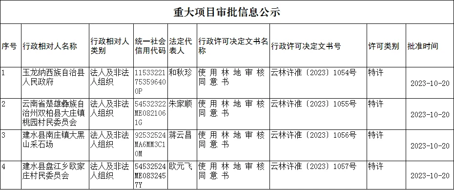 云南省林业和草原局重大项目审批信息公示(2023年10月20日)
