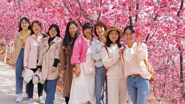 花开三月,巾帼绽放。3月8日,省种苗站组织女职工分别前往宜良山后樱花谷、昆明科普教育基地开展踏青赏花和学习交流活动。三月绽放的樱花在枝头跳跃,身姿染红满山春色,广大女职工犹如春天里的花仙子,一路欢声笑语欣赏大自然美丽景色。随后,大家来到昆明科普教育基地,在享受三角梅花开的春色美景同时,认真学习三角梅的品种和培育过程,并在轻松的氛围里相互讨论,相互学习。