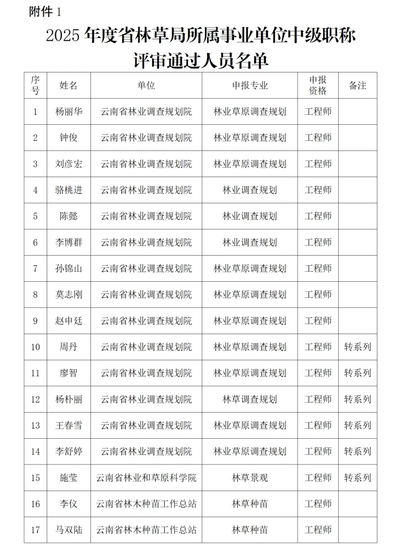 附件:1.2025年度省林草局所属事业单位中级职称评审通过人员名单