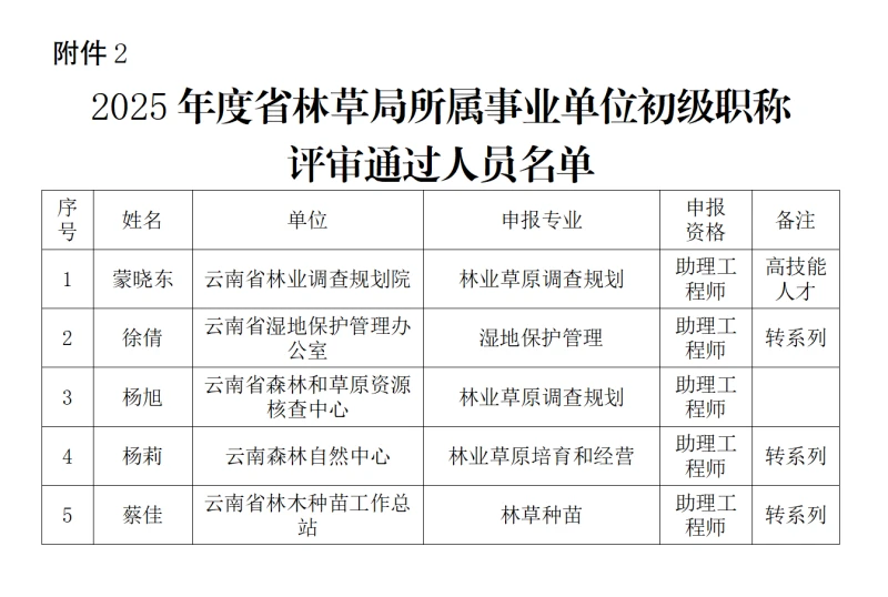 2.2025年度省林草局所属事业单位初级职称评审通过人员名单
