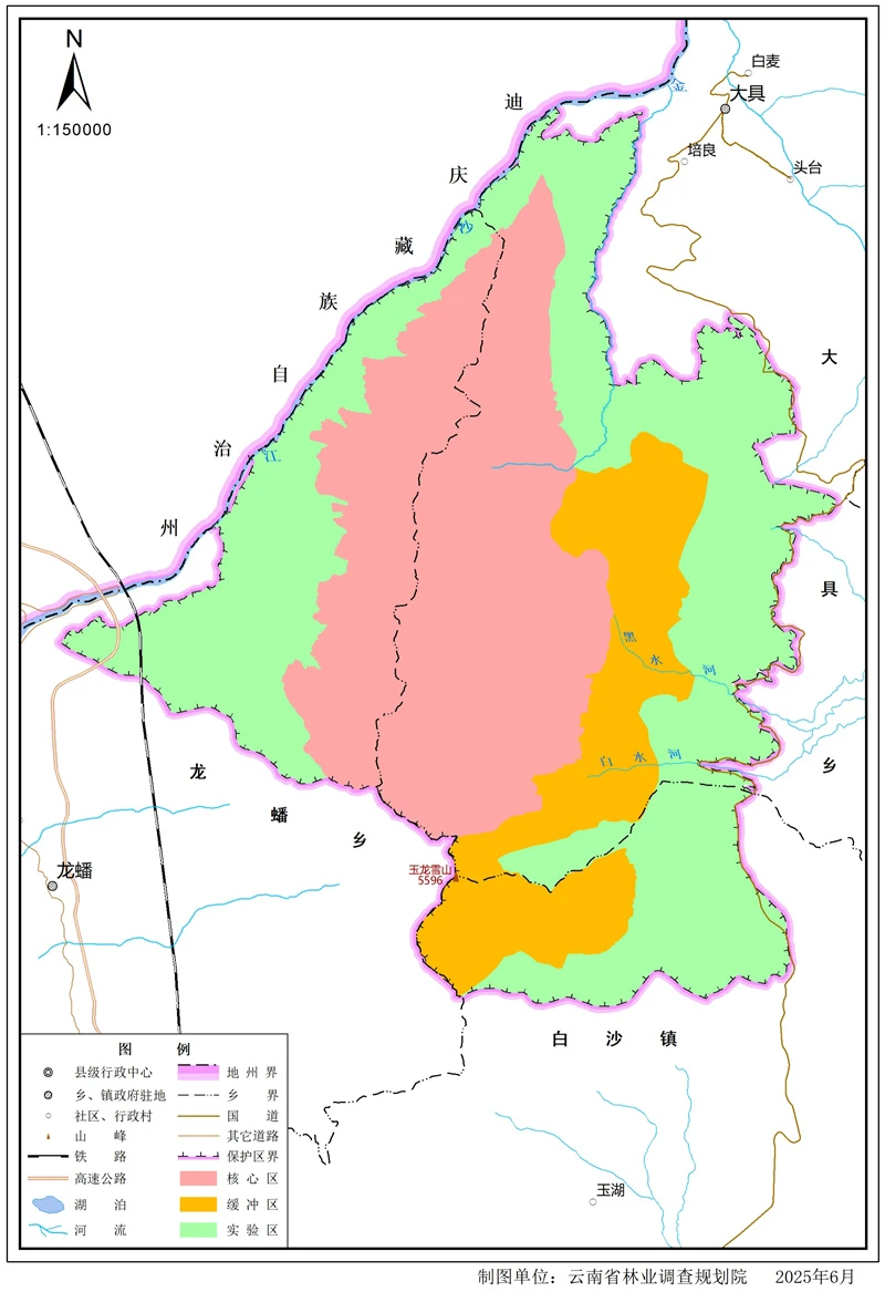 近期,云南省人民政府批复同意玉龙雪山省级自然保护区范围调整。根据《云南省人民政府关于印发云南省地方级自然保护区调整管理规定的通知》(云政规〔2018〕1号)要求,现将玉龙雪山省级自然保护区调整后的面积、四至范围(功能区划图见附件)公布如下: