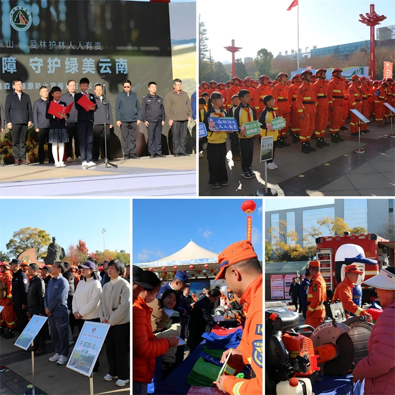 “自2025年12月1日起,全省已全面进入森林草原防火期。火灾是森林的天敌,一点火星就可能让万顷林海化为乌有,让美丽家园遭遇重创……”12月5日上午10时,在昆明市晋宁区郑和文化广场,随着两名小学生郑重发出倡议,以“筑牢防火屏障、守护绿美云南”为主题的云南省2025年森林草原防灭火宣传月活动正式启动。有关单位、昆明市地方专业扑火队及中小学生代表,群众代表400余人参加启动仪式。