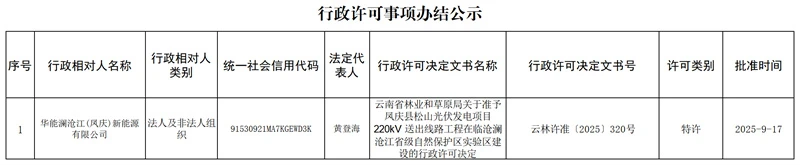 云南省林业和草原局行政许可事项办结公示(2025年9月16日)