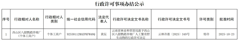 云南省林业和草原局行政许可事项办结公示(2025年10月23日)