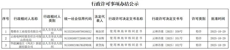 云南省林业和草原局行政许可事项办结公示(2025年10月29日)