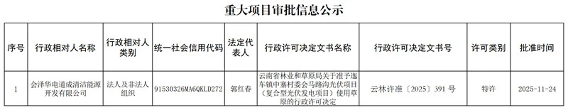 云南省林业和草原局重大项目审批信息公示(2025年11月24日)
