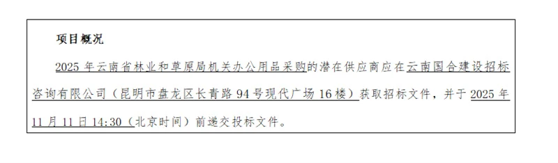 2.项目名称:2025年云南省林业和草原局机关办公用品采购;