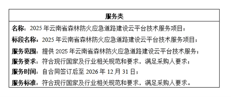 标段名称:2025年云南省森林防火应急道路建设云平台技术服务项目;