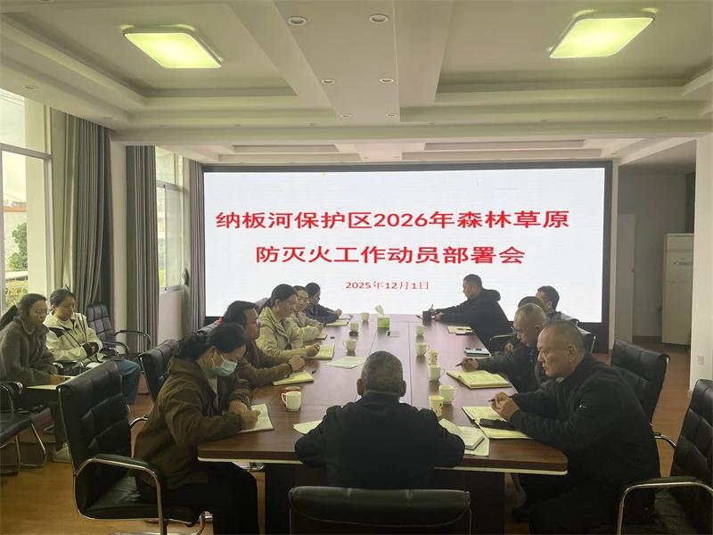 12月1日,纳板河流域国家级自然保护区管理局组织召开2026年度森林草原防灭火工作动员部署会。会议由纳板河管理局主要负责人主持,全体干部职工参加。会议全面总结了2025年防火工作成效,传达学习了国家及省级最新防火要求,并对2026年度森林草原防灭火工作进行了系统动员和周密部署。