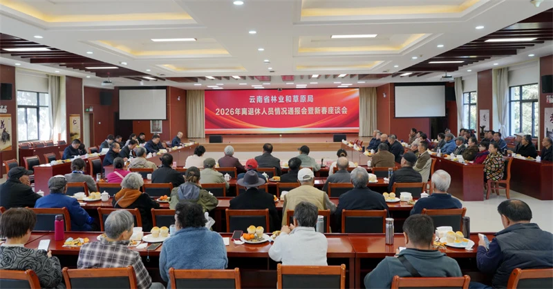 2月9日,云南省林业和草原局召开2026年离退休人员情况通报会暨新春座谈会。省林草局局长、党组书记万勇代表局党组向参加会议的近70名离退休老同志表示衷心感谢,并通报2025年省林草局重点工作开展情况和取得的成效,与离退休老同志共同庆祝新春佳节。