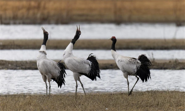要说这次观鸟季的“顶流明星”,黑颈鹤绝对是当仁不让的焦点。据迪庆州纳帕海省级自然保护区管护局1月20日通报,2025—2026越冬季,纳帕海监测到黑颈鹤573只(其中幼鸟88只),直接创下保护区成立以来的最高纪录。