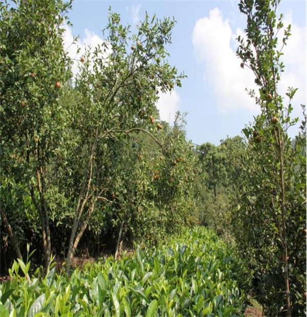4.社会效益与辐射带动。(1)区域辐射。建立油茶+茶叶高效复合经营推广示范基地600亩,在基地周边起到了示范带动作用,为当地农民提供了可借鉴的种植模式和技术经验。(2)社会影响。为当地农民提供了更多的就业机会和收入来源,有力推动了当地经济的持续发展和社会稳定。(3)经营模式创新。示范基地利用茶叶见效较快(3~5年)的特点,弥补油茶见效慢(5~8年盛果)的短板,实现了长短结合和多元经营,借助复合经营模式达成可持续发展,有效促进了当地农业产业结构的优化升级。