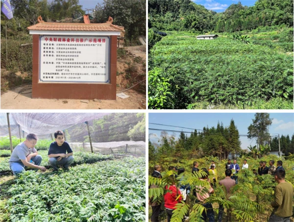 4.社会效益与辐射带动。(1)技术产出。发布实施《刺五加容器扦插苗技术规程》(DB5331/T61-2024)、《抱茎菝葜种子繁育技术规程》(DB5331/T60-2024)2个地方标准。(2)区域辐射。启动“芒市木本森林蔬菜产业示范推广项目”,投入资金173.5万元,发展种植香椿、椿头、棕包、树头菜等,发放各类森林蔬菜种苗37.50万株,发展森林蔬菜面积500余亩,在芒市辐射带动1200余亩。(3)社会影响。打造河心场村特色种植产业,为群众致富增收发挥了重大科技支撑引领作用。