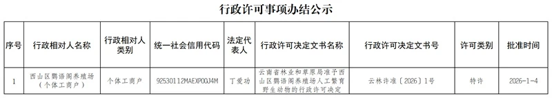 云南省林业和草原局行政许可事项办结公示(2026年1月4日)