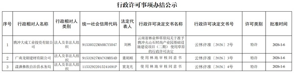 云南省林业和草原局行政许可事项办结公示(2026年1月6日)