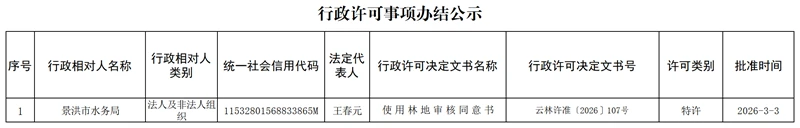云南省林业和草原局行政许可事项办结公示(2026年3月3日)