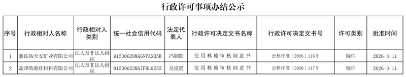 云南省林业和草原局行政许可事项办结公示(2026年3月11日)