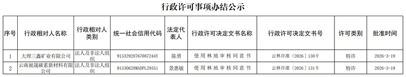 云南省林业和草原局行政许可事项办结公示(2026年3月19日)