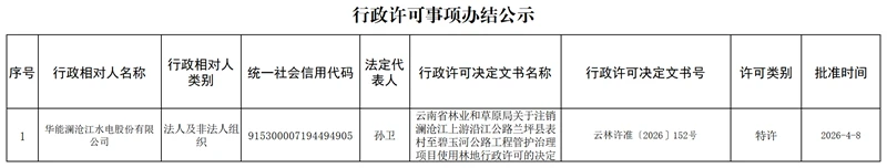 云南省林业和草原局行政许可事项办结公示(2026年4月8日)