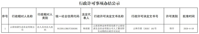 云南省林业和草原局行政许可事项办结公示(2026年4月19日)