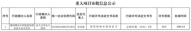云南省林业和草原局重大项目审批信息公示(2026年1月8日)