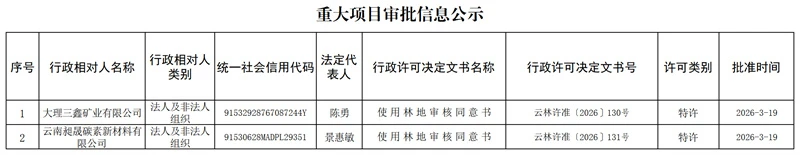 云南省林业和草原局重大项目审批信息公示(2026年3月19日)