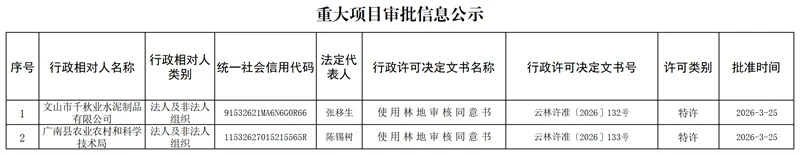 云南省林业和草原局重大项目审批信息公示(2026年3月25日)