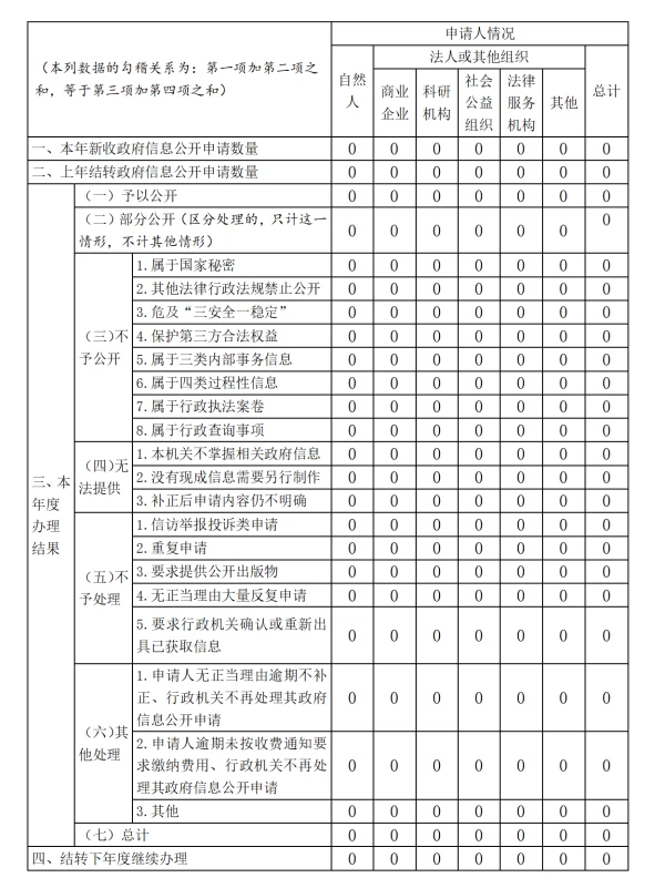 (二)依申请公开情况。2025年受理公民、法人或其他组织通过政府信息公开平台、传真、信函等方式提出的政府信息公开申请0件。