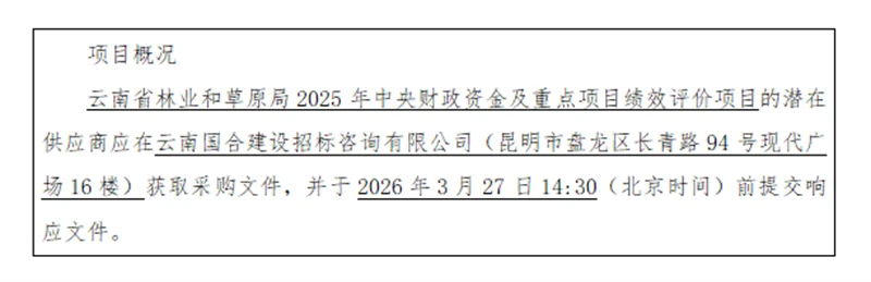 2.项目名称:云南省林业和草原局2025年中央财政资金及重点项目绩效评价项目;