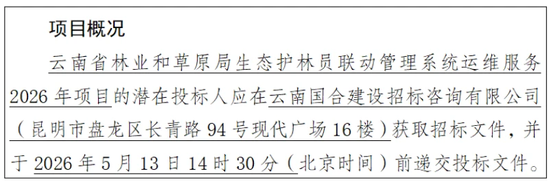 (二)项目名称:云南省林业和草原局生态护林员联动管理系统运维服务2026年项目;