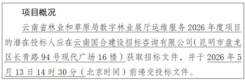 (二)项目名称:云南省林业和草原局数字林业展厅运维服务2026年度项目;