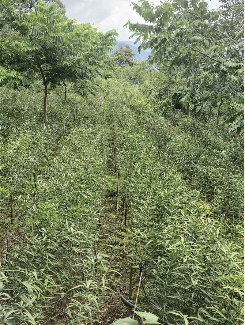 针对实际问题,依托林草科技推广项目的实施,在楚雄彝族自治州武定县插甸镇老木坝多福宽村精准打造核桃林下林药复合经营示范点,充分利用核桃树生长的物候期特性,为滇黄精生长期提供庇荫生长环境,解决滇黄精人工种植光照过强、土壤保水差、土地利用率低等问题,实现“树上核桃、林下黄精”的立体种植模式,提升林地综合收益,助力林农增收和生态保护。