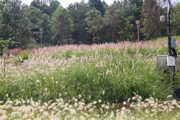 观赏狼尾草以其独特的美学魅力和卓越的生态适应性,作为营建低维护景观的植物主体材料,其抗逆性强、耐粗放管理,特别是在截留雨水、涵养水源、固土护坡、土壤修复等方面都发挥着重要的生态功能,在现代景观与生态建设中展现出多重核心价值。云南林业职业技术学院“观赏草种质资源开发与利用科技创新团队”经过多年的观赏草草种资源研究,依托中央财政林草科技推广项目的实施,通过引种栽培和试验观察,以观形、观叶、观花、株高、观赏期、生长状况、抗逆性和适应性等多因子建立评价体系,对25种适宜在滇中地区种植栽培的狼尾草属多年生观赏草的观赏价值进行了综合评价,筛选出15种适宜品种并广泛推广应用。对不同品种的种子特性、分株分蘖和开花特性进行研究,总结了种苗繁殖生产标准化技术规程。