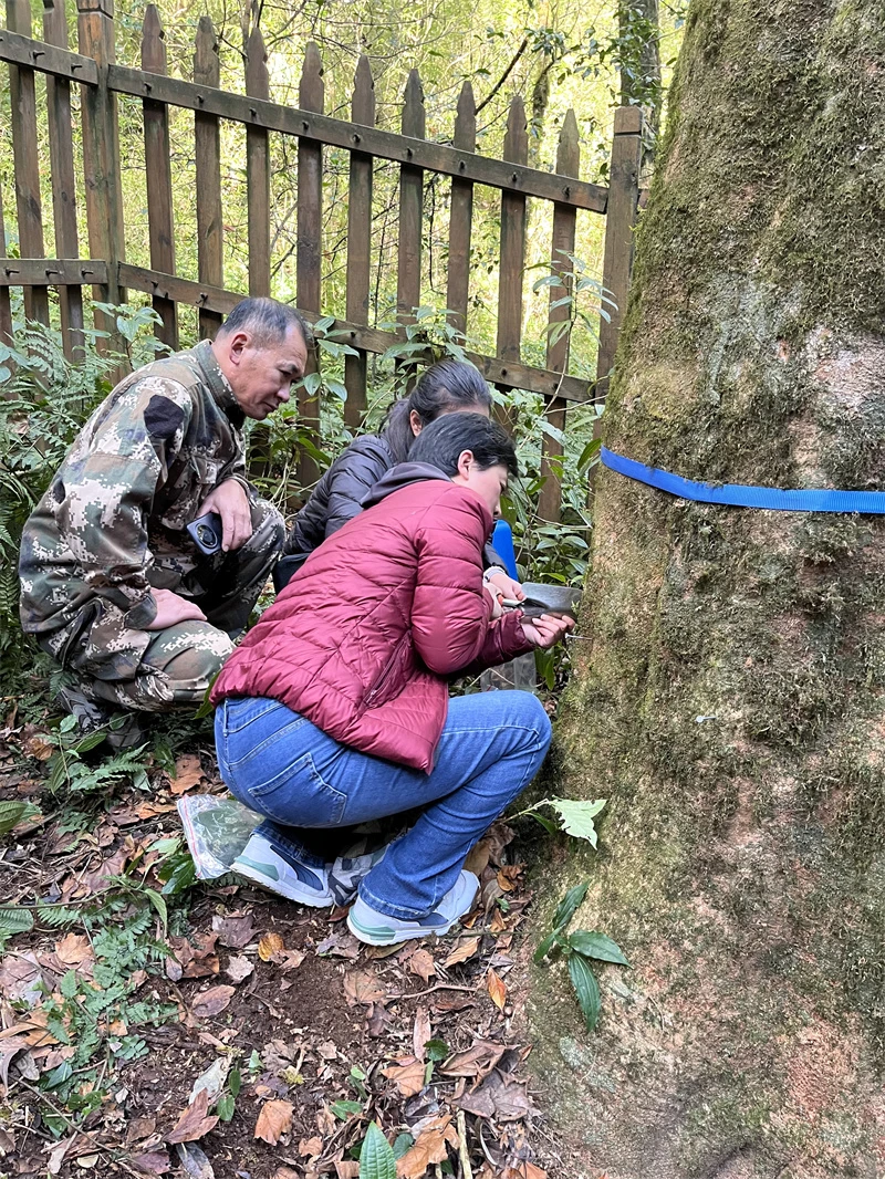 近日,云南省林木种苗工作总站联合西南林业大学、普洱市林业和草原局、云南哀牢山国家级自然保护区镇沅管护局组成专业技术团队,到普洱市镇沅县九甲镇为云南哀牢山国家级自然保护区内的1号、2号和3号野生古茶树“诊脉体检”,旨在为古茶树精准保护提供科学依据,同时为哀牢山千家寨野生茶树群落监测奠定良好基础。