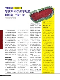 乡护林员李玉花和同伴们 富于时代特征、符合怒江 呵护美丽怒江。 元,16.5 万群众人均增收