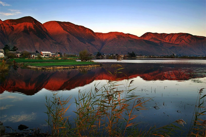 洱源西湖省级重要湿地是国家二级保护野生动物紫水鸡的主要栖息地,也是滇西北泥炭最富集地之一。村中有湖、湖中有村,形成了森林、岛屿、田园、民居倒映湖中的奇特景象。