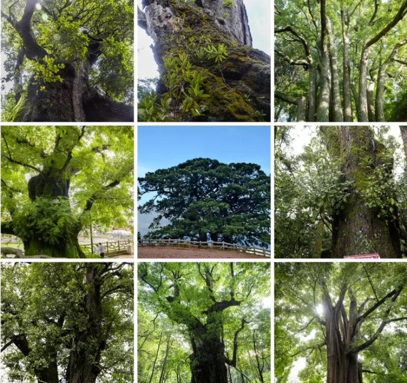 云南千年古树集中分布在海拔1000—2500米的山地和村寨周边,气候温润,雨量充沛,为古树提供了历经千载而依然苍翠的生境,也孕育了罕见的自然奇迹。云南千年古树见证着村寨的兴衰,庇护着一代又一代人,是人与自然和谐共生的真实写照。